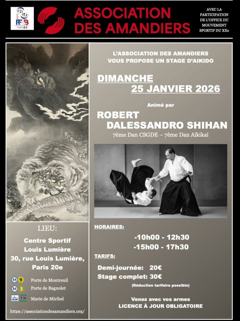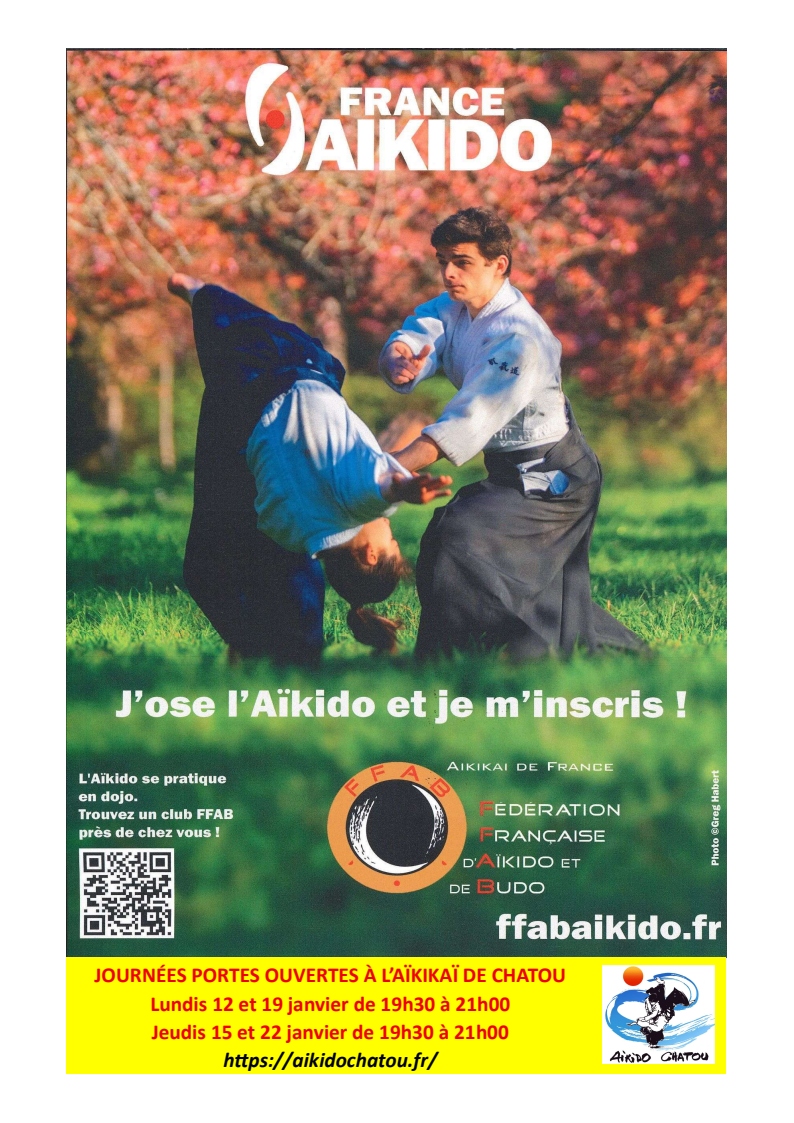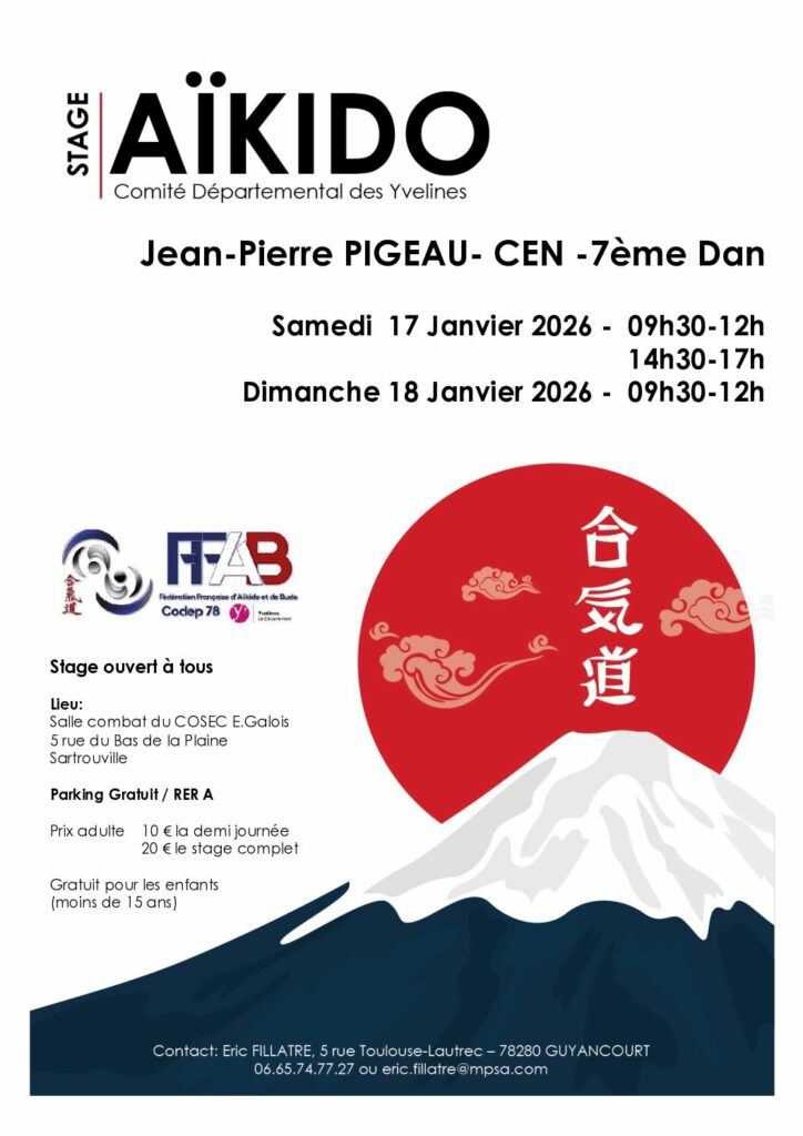 L’Esprit de l’Aikido Présentation du Club Stages Yudansha Vie du Club Informationsle DOJO sera fermé le jeudi 22 janvier en raison des voeux du maire. Stages Recommandés par le Club Liste des stagesretrouvez tous les stages d’Aikido Stages
