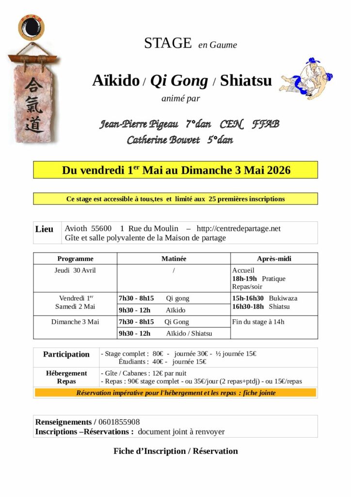 L’Esprit de l’Aikido Présentation du Club Stages Yudansha Vie du Club InformationsPas de cours le Lundi 5 Avril ! Stages Recommandés par le Club Liste des stagesretrouvez tous les stages d’Aikido Stages